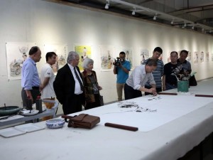 黄镜明周文熙出席广东越华画院孙健彬·杨正豪作品展